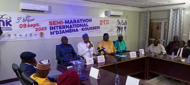 La Conférence de Presse de la 3ème Édition du MINK c’était ce matin à la Mairie de la ville de Ndjamena. En présence du Maire 1er Adjoint de la ville de Ndjamena, des députés du Cameroun et du Tchad, l’honorable Kamssouloum Abba Kabir (Promoteur du marathon) et le député ISSA MARDO membre du conseil national de transition, de Mme Zenabou Ahmed Kotoko adjoint au Maire de la Commune de Kousseri, de leurs Majestés les Sultans de Kousseri et celui de Ndjamena.